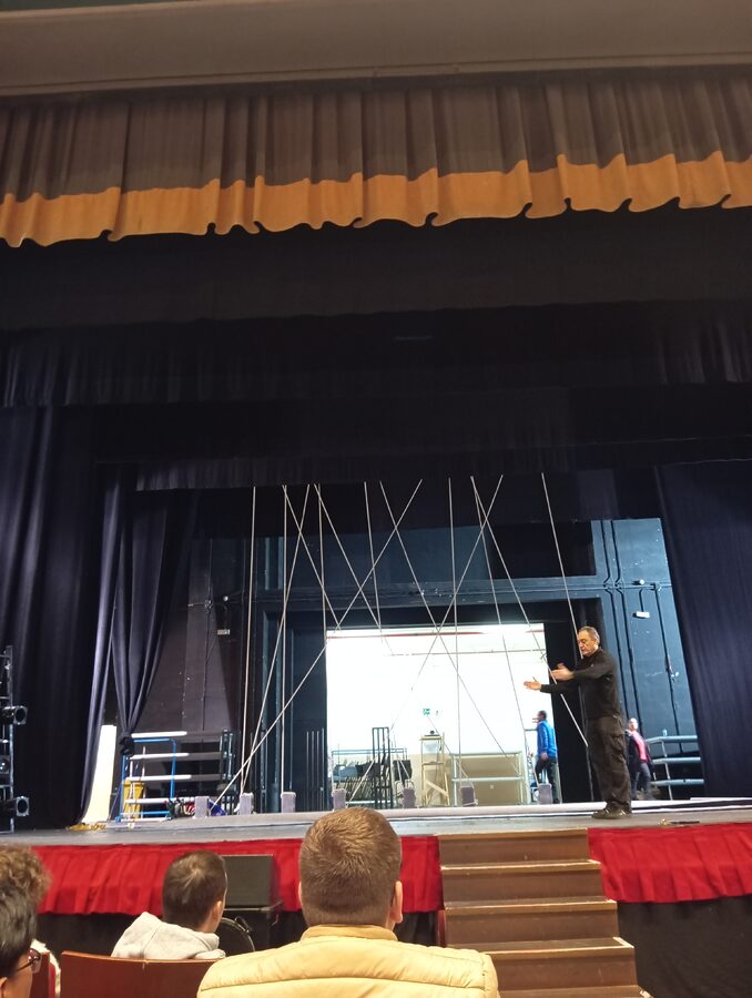 Los alumnos de primero del ciclo superior de Realización de Proyectos Audiovisuales y Espectáculos, acompañados por sus profesores Isidro Jiménez y Rosana Bermejo, han visitado el Teatro López de Ayala de Badajoz. Han asistido a un ensayo técnico de luces y sonido, donde entre otras cosas, han aprendido a realizar una correcta distribución de recursos de producción, algo que podrán llevar a la práctica a lo largo del curso. Además de escuchar con atención la trayectoria histórica del conocido teatro pacense, han entrado en contacto con los elementos escénicos más frecuentes en la puesta en escena de un espectáculo.
